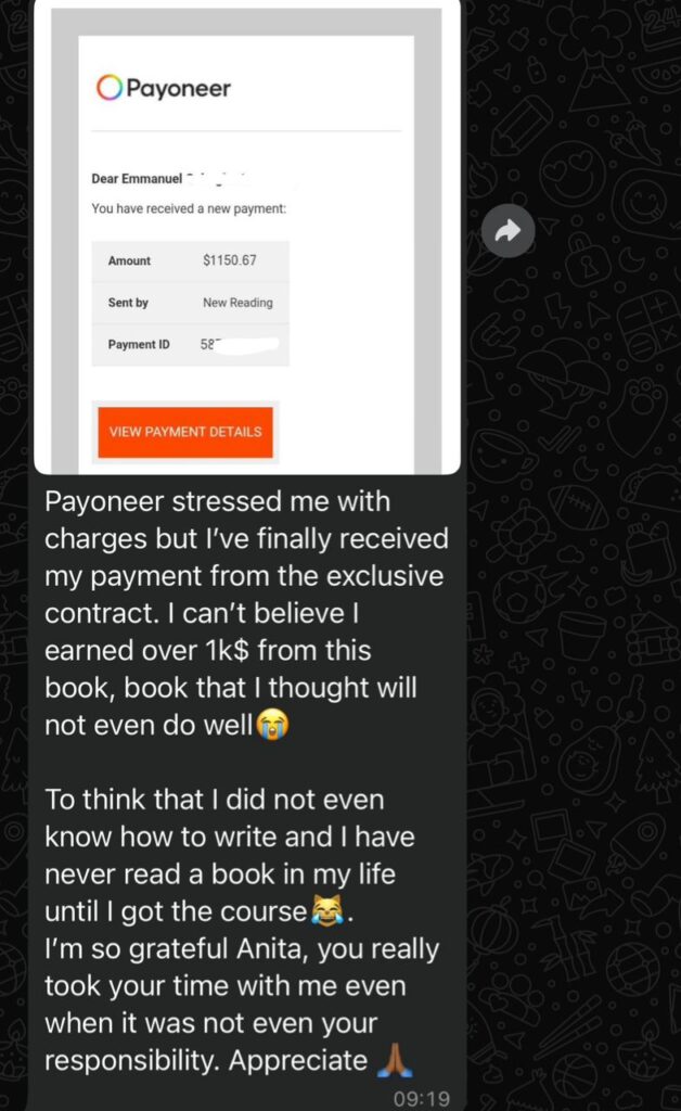 I stumbled on ghostwriting one random day through someone’s WhatsApp status. The training was affordable, so I jumped on it but the journey wasn’t all rosy.